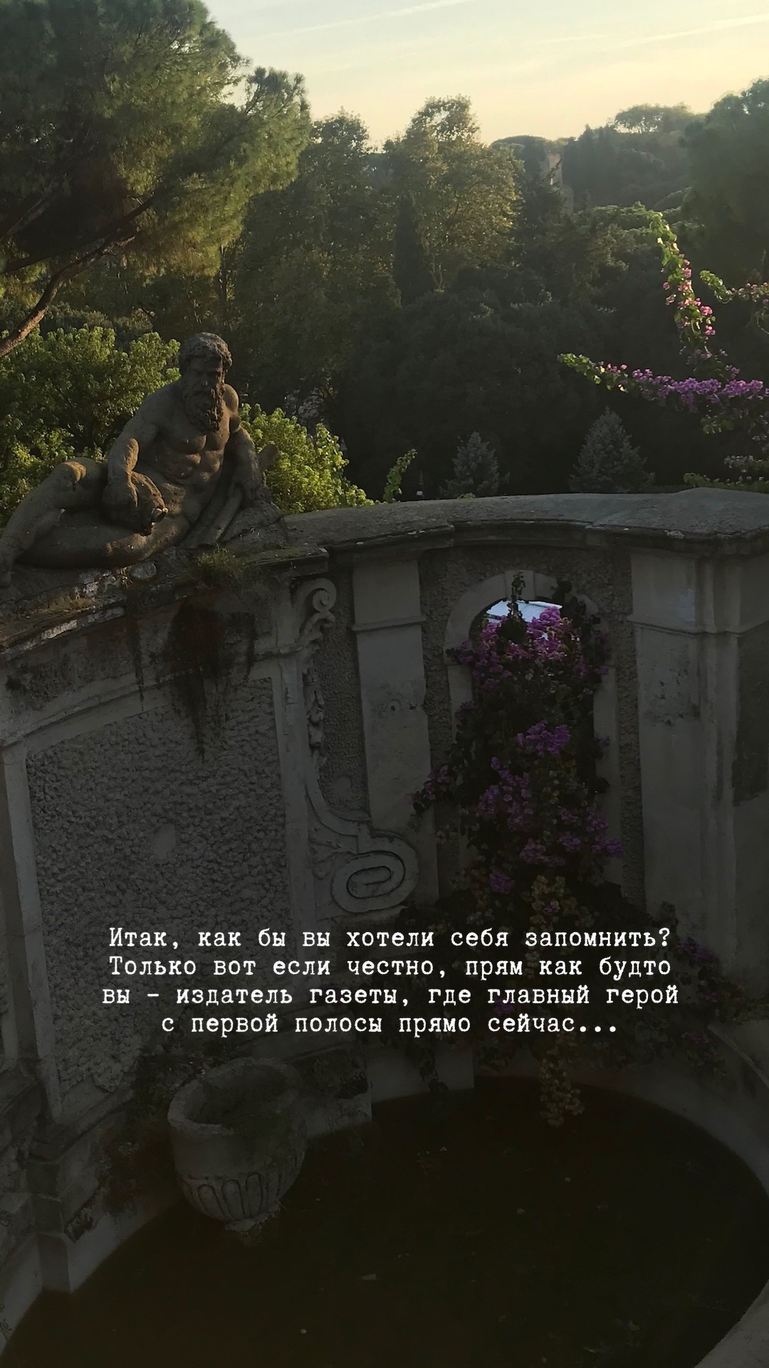 Я начала это письмо с того, что очень ценю хороший контент. Это действительно так, потому что для меня контент – это содержание. Если сделать чуть пафосную, но от этого не менее работающую проекцию, то можно понять вот такую нехитрую штуку: | | | Если задуматься, то тот день/час/момент, который ты проводишь нейтрально, средне, одним словом – никак, вряд ли останется в памяти. Но все изменится, если сделать свои эмоции погромче и представить, что этот день/час/момент – не запасной, а самый настоящий. | | | Даже если у вас в распоряжении только ручка и бумага или только устройство, с которого вы сейчас читаете это письмо, то все равно можно выжать хоть каплю поэзии: | | | | Сидите за столом? А как насчет того, чтобы закинуть ноги и выкурить сигарету, пуская кольца в потолок, прямо в комнате? Не подходит? А как бы вы хотели себя запомнить вот в тех условиях, в которых вы сейчас находитесь? Может, включить музыку и прогуляться по ночному городу? Или вдруг начать писать книгу? Или, может, позвонить кому-то и проговорить полночи, глядя в окно?